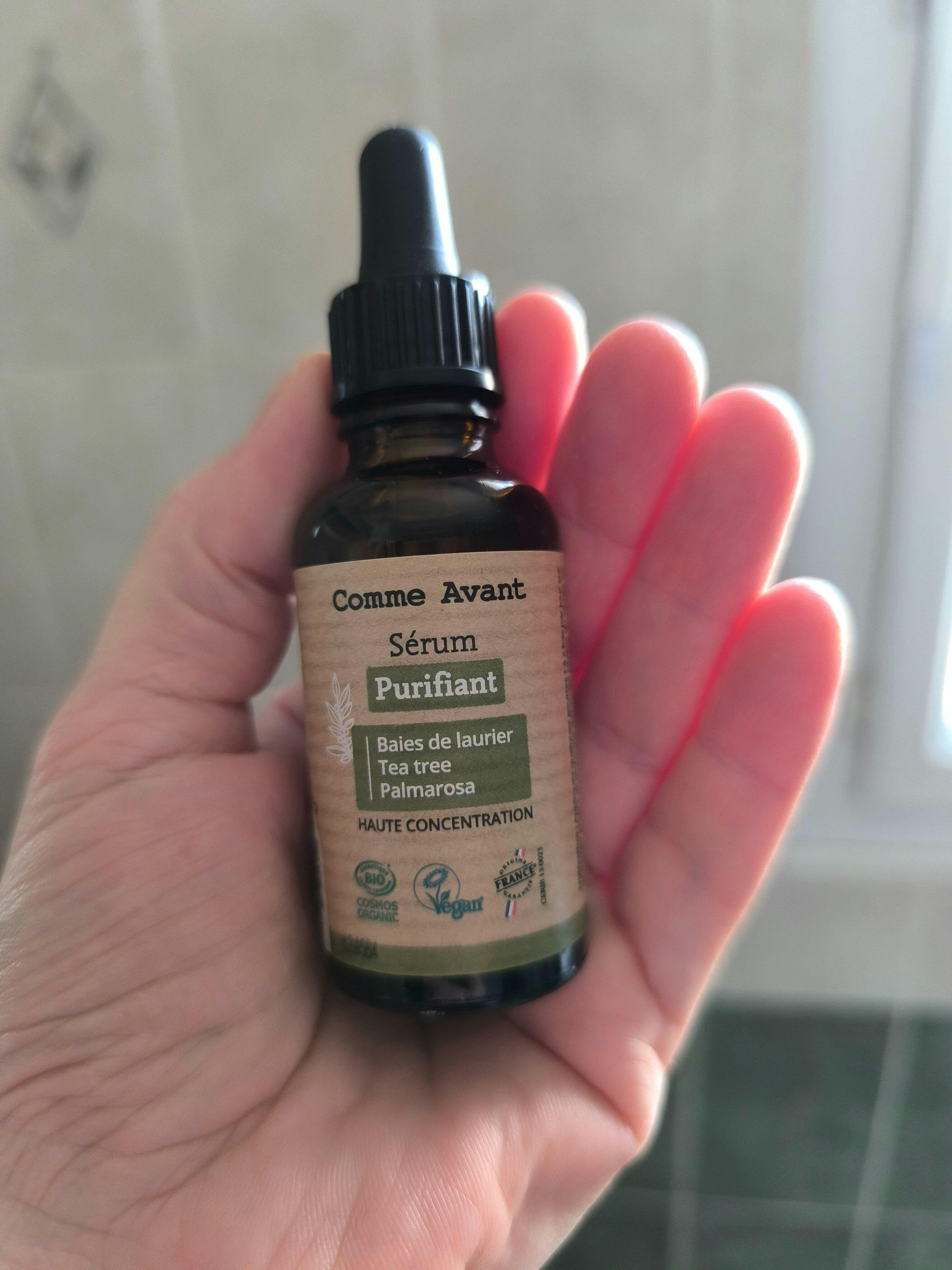 En cas d’imperfections visibles et enflammées, appliquez une petite quantité du sérum purifiant directement sur les boutons. Ce soin ciblé aide à purifier et calmer les zones inflammatoires, accélérant la cicatrisation et réduisant les rougeurs. Attention, le sérum purifiant est déconseillé aux femmes enceintes et allaitantes à cause de la présence d'huiles essentielles.