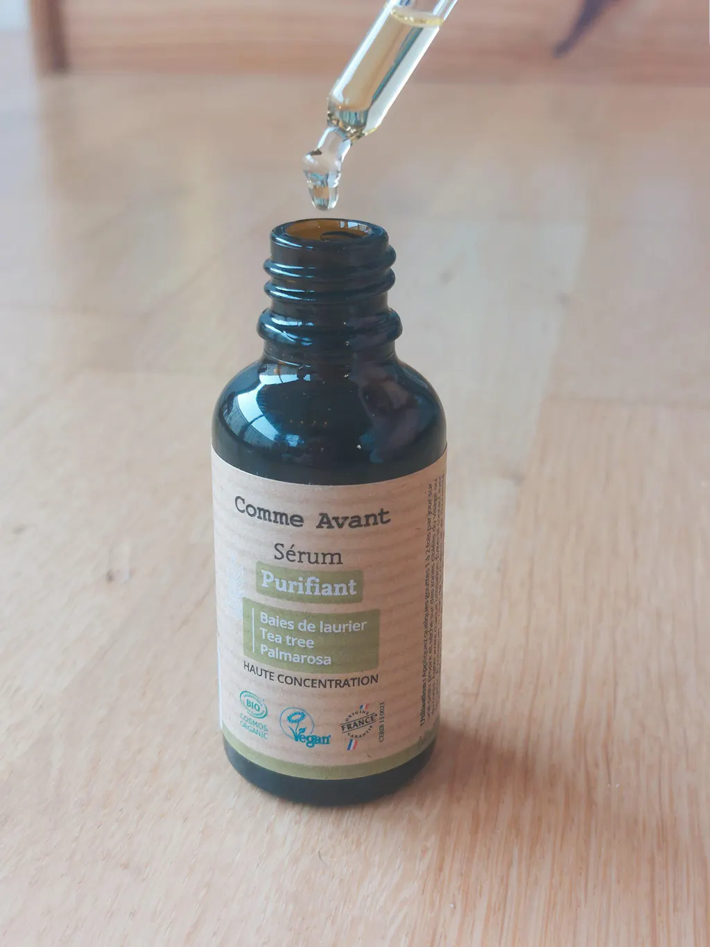 Notre sérum purifiant ne contient que 5 ingrédients et 3 actifs puissants pour lutter efficacement contre les imperfections.