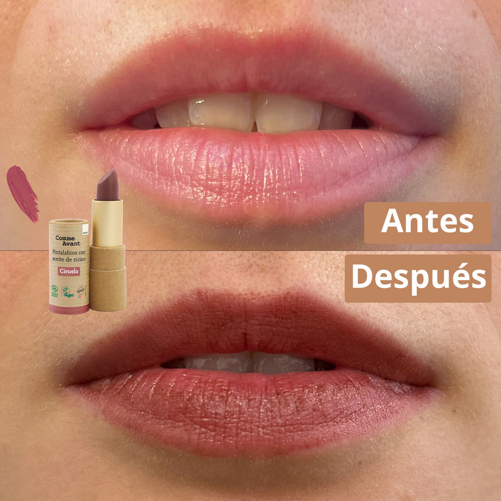 Lista INCI del Pintalabios Ciruela: Astrocaryum Murumuru Seed Butter, Glyceryl Isostearate, Euphorbia Cerifera Cera, CI 77007, Ricinus Communis Seed Oil, Capryloyl Glycerin / Sebacic Acid Copolymer, Kaolin, CI 77491