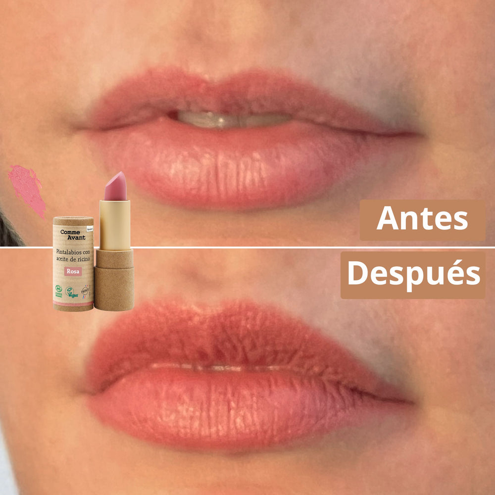 Lista INCI del Pintalabios Rosa: Glyceryl Isostearate, Zinc Oxide, Astrocaryum Murumuru Seed Butter, Euphorbia Cerifera Cera, Capryloyl Glycerin / Sebacic Acid Copolymer, CI 77007, Ricinus Communis Seed Oil, CI 77491, Kaolin.