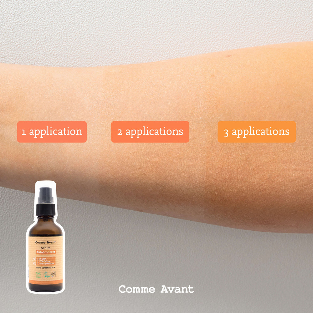 Nuestra fórmula de suero autobronceador está certificada como orgánica y todos sus ingredientes son de origen natural.