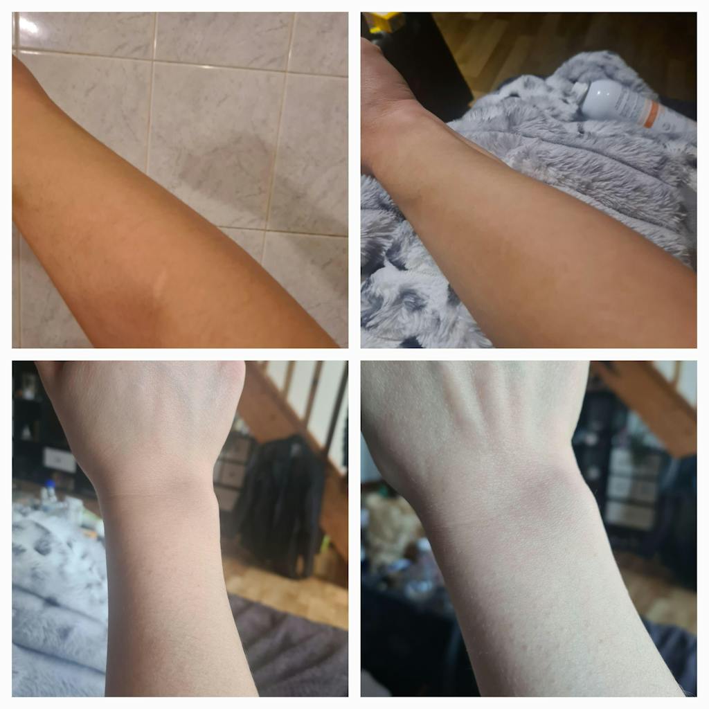 - DHA : La dihidroxiacetona es un azúcar natural que reacciona con los aminoácidos de la superficie de la piel. Colorea temporalmente la capa externa de la epidermis mediante la producción de pigmentos marrones, imitando así un bronceado natural sin rayos UV. Combinada con el pentilenglicol, ayuda a lograr un tono uniforme y radiante, y a mantener la hidratación de la piel.