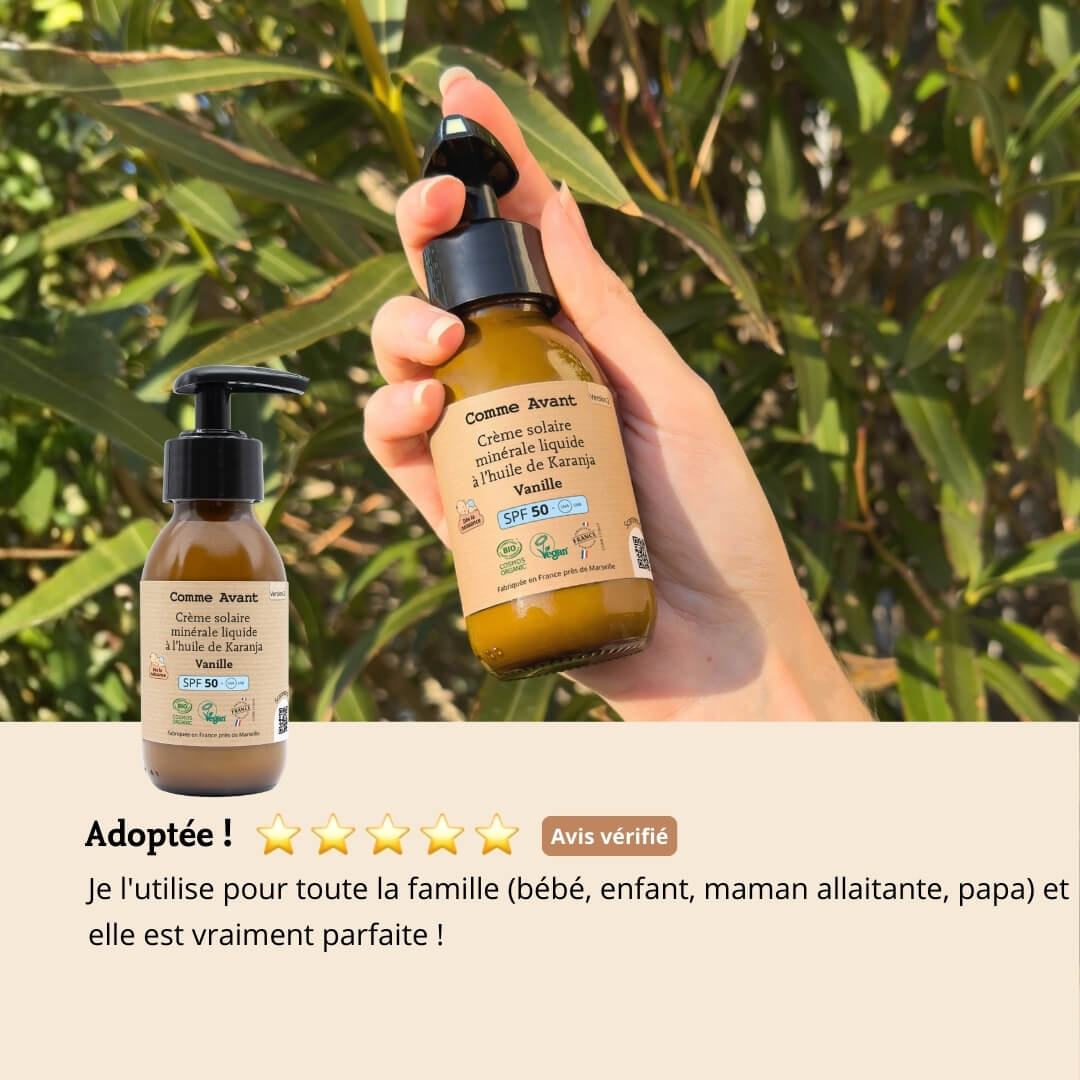 Moureaux Emilie Crème solaire fluide très pratique, flacon pas trop gros, et suffisant pour la saison. J’adore l’odeur. S’étale facilement, invisible et hydrate la peau aussi.